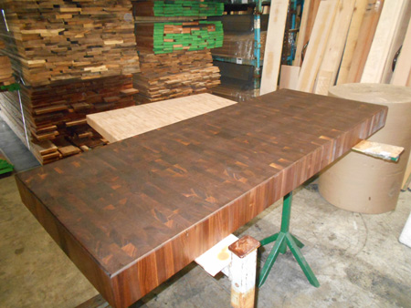 Production pictures butcher block countertops, stair parts,